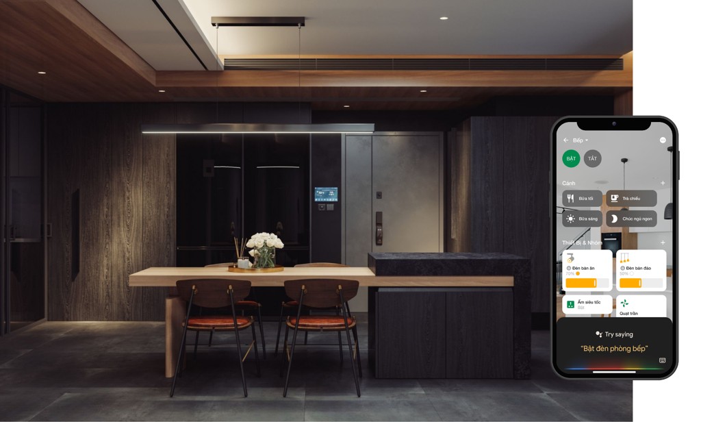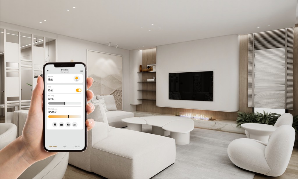 Không cần bật/ tắt trực tiếp tại công tắc, bạn có thể dễ dàng điều khiển hệ thống chiếu sáng trong nhà từ xa trong nhà từ bất kỳ đâu thông qua Smartphone: